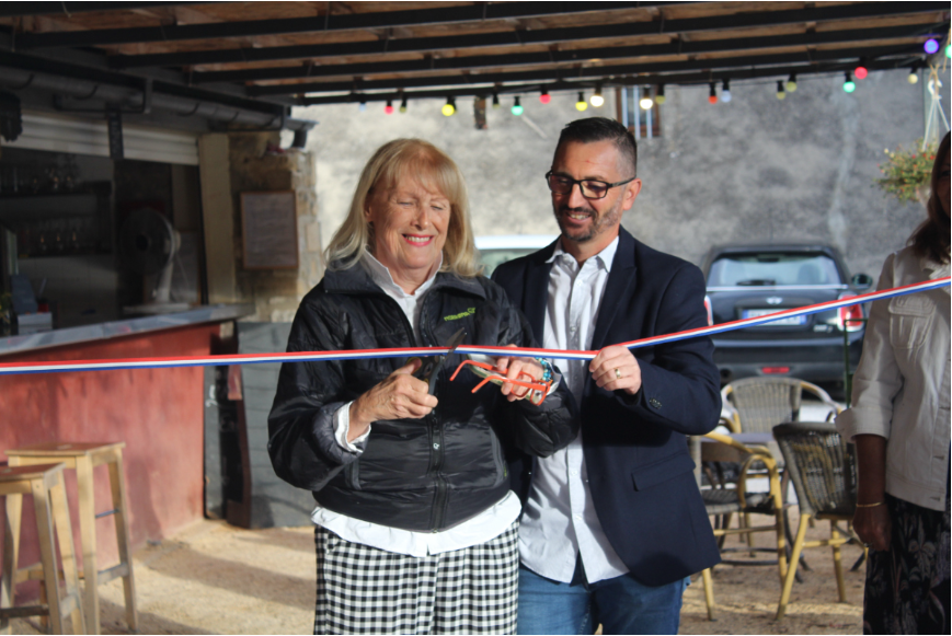 C’est Aleth Robin, Maire du village de 2008 à 2014, qui a été invitée à couper le ruban. Un juste retour des choses pour celle qui a été à l’initiative de la création du café, en 2008, sur le site de l’ancienne école de Belvezet.